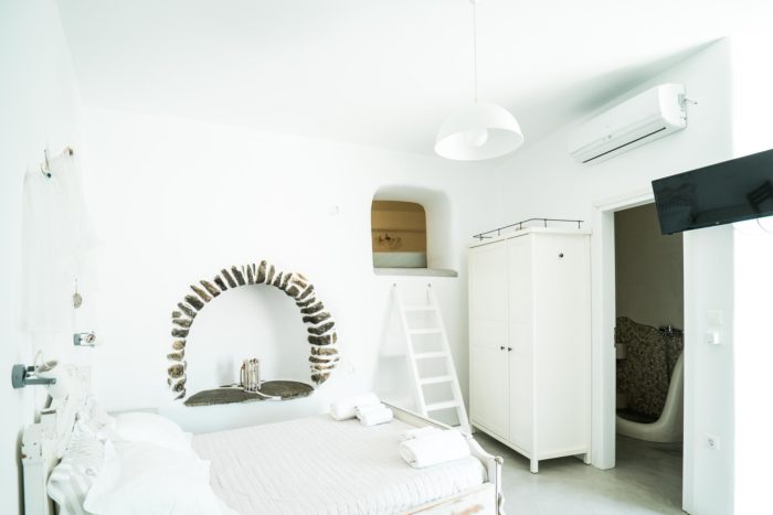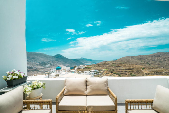 Plori Studios & Apartments features three incomparable apartments and three spacious studios of distinct, traditional Cycladic architectural style, enriched with contemporary notes, open onto verandas with a beautiful, panoramic view of emerald waters of the Aegean Sea, the surrounding land, the mountain and of course the village.